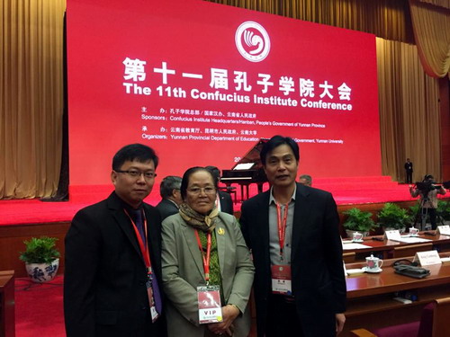 我校承办的柬埔寨王家研究院孔子学院自成立以来已先后获得2次“孔子学院先进个人”和3次“先进孔子学院”光荣称号,此次大会,柬方院长谢莫尼勒再获2016年孔子学院先进个人光荣称号。谢莫尼勒院长的获奖既是对他个人工作的表彰,更是对柬埔寨孔子学院团队以及双方合作院校孔子学院工作的充分肯定。