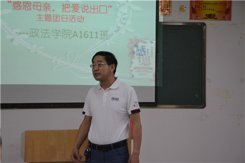 在分享讨论环节里,魏立平副书记回顾了A1611班团支部历次的主题团日活动,充分肯定了主题团日活动的意义。他分享了自己与母亲的小故事,多年来与家人用实际行动诠释对母亲的感恩。魏书记通过对比中西文化差异,展示了中国“孝”文化的博大精深与源远流长。“我们的爱是溪流,母亲的爱是海洋”。最后,魏副书记为同学们朗诵了一首汪国真的《母亲的爱》,大家无不被真情实意所感动,体会到母爱无疆。