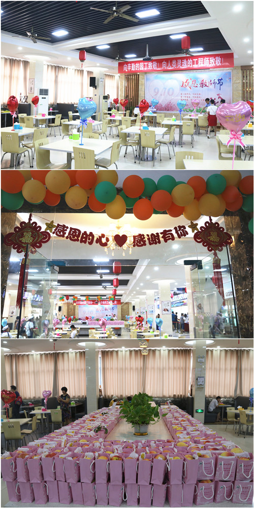 据悉,为喜迎教师节,后勤管理处提前准备,精心策划,前期做了大量的师生调研,真正想为全体教师呈现一个难忘的教师节。教工食堂的第一活动现场之外,学生食堂也在第一时间开展了丰富多彩的节庆活动,虽然形式各异,但都主题突出,均表达了同品节日喜悦,共叙育人情怀,畅想美好未来的美好心愿,后勤管理处希望通过教师节的活动表达对辛勤耕耘在教学科研第一线的教职工们的感谢和关怀。