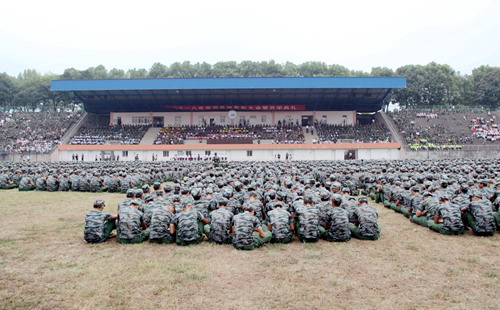 金秋送爽,丹桂飘香。9月16日上午,我校2018级新生军训总结表彰大会暨开学典礼分别在主校区和浔东校区隆重举行。武警九江支队副支队长郭华,在家校领导赵伟、刘晓东、魏立平、纪岗昌、陈春生、杨耀防、夏启国、查振华、李广欣出席了本次会议,各二级学院院长、党委书记以及有关职能部门负责人、全体辅导员、新生班主任及主校区、浔东校区、八里湖校区2018级近万名新生参加了本次大会。军训总结表彰大会由陈春生副校长主持。