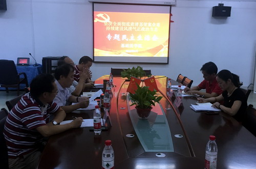 9月25日下午,基础医学院党委在华文楼105室召开“坚决全面彻底肃清苏荣案余毒,持续建设风清气正政治生态”专题民主生活会,副校长杨耀防同志在组织人事部副部长夏英同志的陪同下到会进行指导,基础医学院党委班子全体成员出席会议。专题民主生活会由院党委书记余朝阳同志主持。