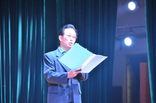 离退休职工管理处处长燕红波致辞,他祝福老同志健康、幸福、快乐、长寿,他还简要传达了校党委书记赵伟在学校首次党代会上作的《不忘初心牢记使命 奋力谱写新时代九江学院发展的新篇章》主题报告精神。