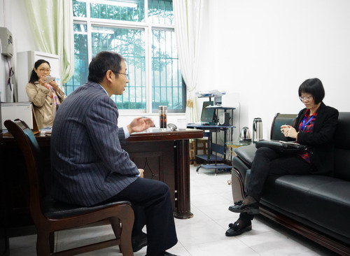 评估专家周立亚教授与后勤管理处和基建处负责人座谈。