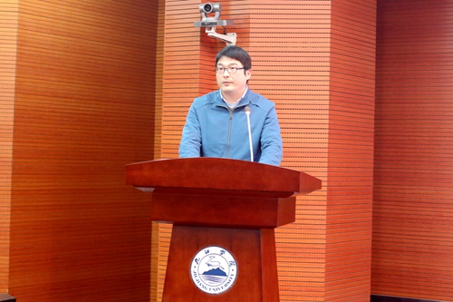 科研处处长王侃民做了2019年国家级科研项目申报动员报告。化环学院彭游博士和旅游学院孙冬英副院长分别代表学院交流了科研工作经验。经管学院张应华博士、理学院李进博士分别就申报国家级科研项目的经验体会做了大会交流。
