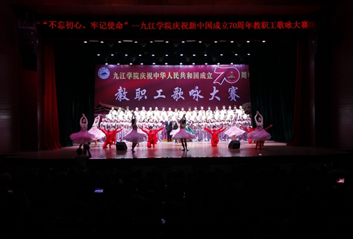 “不忘初心、牢记使命”——庆祝新中国成立70周年教职工歌咏大赛由中共九江学院委员会、九江学院主办,学校党委宣传部和工会具体承办,旨在引导广大教职工更加紧密地团结在以习近平同志为核心的党中央周围,当好主力军,建功新时代;激发广大教职工的爱国热情,团结动员广大教职工不忘初心,牢记使命,立足岗位,为实现建设特色鲜明区域领先的综合性应用型大学办学目标而努力奋斗。