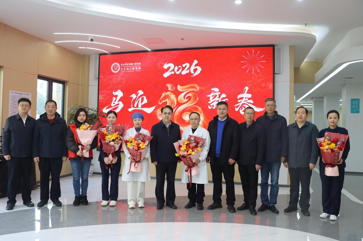 慰问中,李明斌对附属口腔医院过去一年所取得的工作成绩给与肯定。他指出,过去一年,口腔医院坚持“以患者为中心”,持续优化就医环境、提升服务质量,各项工作扎实有效。医院不仅打造了高标准的就医环境,更凭借优质、暖心的服务,让群众感受到了医疗服务的温度。他希望新的一年,医院能继续发挥口腔专科特色优势,进一步提升服务水平,为守护群众口腔健康、助力“健康中国”建设作出应有贡献。
