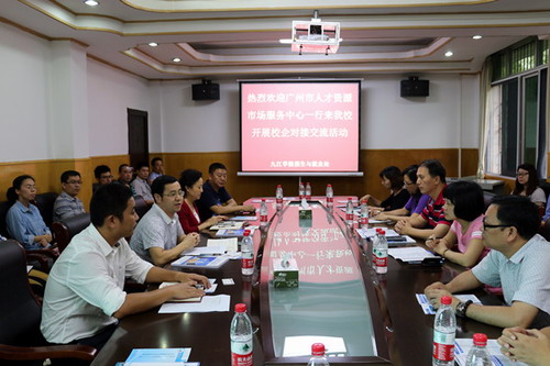 王主任首先感谢了我校的热情接待,提出很早就向往九江的魅力,首次来到九江学院交流感到非常荣幸。王主任介绍了广州市开发区的基本情况,历史沿革,并指出来自江西的人才是广州市开发区的主力军,来自赣鄱大地的人才往往是勤劳肯干、踏实奋斗,希望学校能够支持校企对接交流活动。冯部长介绍了广州市人力资源市场服务中心在校企合作方面的做法。邝主任介绍了在广州团市委的领导下,广州市青年就业创业服务中心在青年创业方面的相关工作。