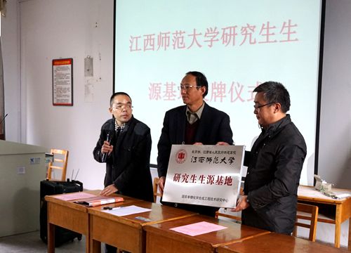 接着,熊斌副主任和刘新强书记分别代表双方单位签订了“江西师范大学研究生生源基地建设协议”,并在热烈的掌声中进行了”江西师范大学研究生生源基地授牌”仪式。