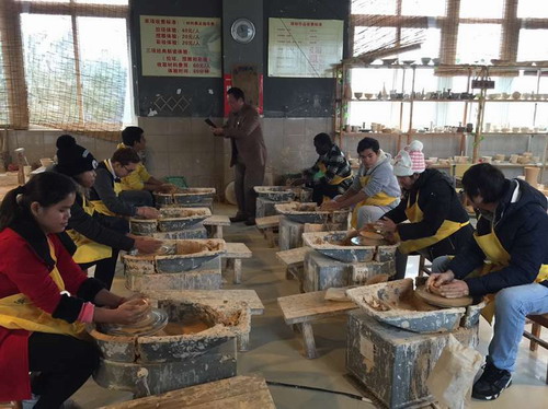 下午,留学生们来到了陶瓷制作体验基地,亲手制坯、描绘、上釉,感受到了制瓷的乐趣和艰辛。