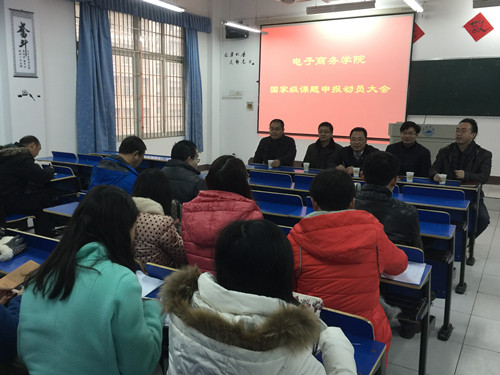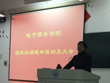 12月24日上午,电子商务学院召开国家级课题申报动员大会。科研处副处长宋士华、经管学院副院长高阔博士受邀来学院指导教师申报国家级课题。大会由电子商务学院郑孝庭副院长主持,电子商务学院院长郑祚双、党委书记丁文林及全体教师参加会议。