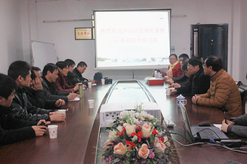 詹建志院长首先对蔡官华检察长一行的到访表示热烈欢迎,并向蔡官华检察长一行介绍了我院获批江西省知识产权培训基地并成功举办首批九江市知识产权从业人员培训,以及近期我院代表队参加江西省政法院校大学生模拟法庭辩论赛取得的优异成绩等情况。詹建志院长对庐山区检察院一年来给予车传和老师挂职锻炼的大力支持表示感谢,希望双方继续推进院检合作事宜。