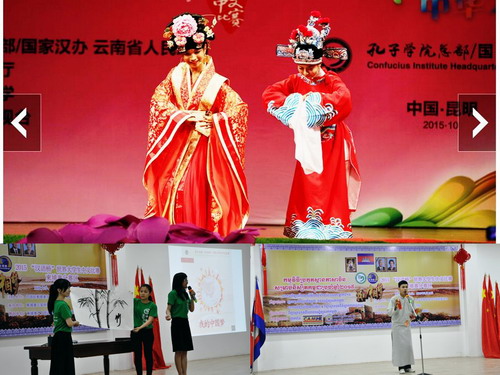 2015年的12月更是喜上加喜。2015年12月6日,在第10届孔子学院大会上,柬埔寨王家研究院孔子学院又获“全球先进孔子学院奖”。柬埔寨王家研究院孔子学院从2009年揭牌运行以来,已第3次获全球先进孔子学院奖。此外,柬埔寨王家研究院孔子学院还被国家汉办/孔子学院总部纳入“全球示范孔子学院”建设行列。孔子学院选送的蔡佑鑫、黄妮佳分获第八届"汉语桥"世界中学生中文比赛总决赛个人一等奖、二等奖。