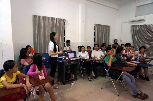 杨苏苏老师以一小段孔雀舞《有一个美丽的地方》开启了她的讲座,学生们看了以后觉得跟柬埔寨舞蹈还有一些共性,对讲座充满期待。杨老师用PPT、视频和动作示范的方法向大家介绍了中国民族舞蹈的相关情况,包括民族舞蹈的形成、民族舞蹈文化的类型,以及各种舞蹈的特点等等。学生们在了解了一些相关知识以后都跃跃欲试,踊跃参加民族舞蹈的学习和体验。