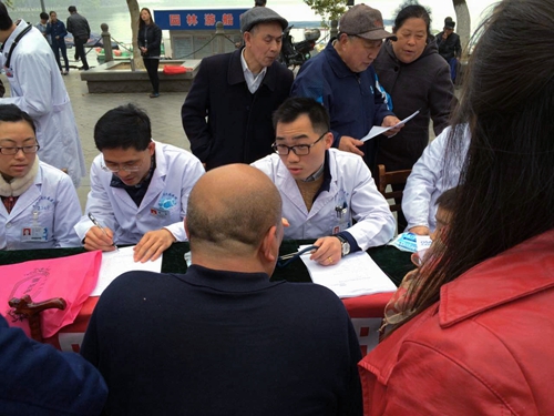 早上8:30,烟水亭广场义诊活动正式开始,过往市民纷纷围住展台询问,临床医学院/附属医院呼吸二科医护人员耐心地为现场的病友们解答疑惑,从睡眠障碍的发生、进程、危害及治疗措施等方面宣讲健康睡眠知识,并发放了相关宣传资料和调查问卷。现场人头攒动,参与义诊活动的病友和市民众多,气氛活跃。