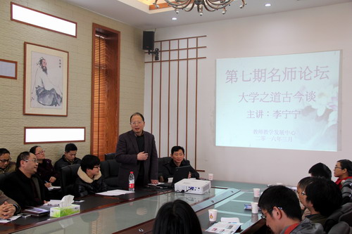 3月23日,由教师教学发展中心组织的第七期名师论坛活动,在风景秀丽、春意盎然的两南山举行,四十多位教师围坐一堂,聆听、品味李宁宁教授的“大学之道古今谈”主题报告。