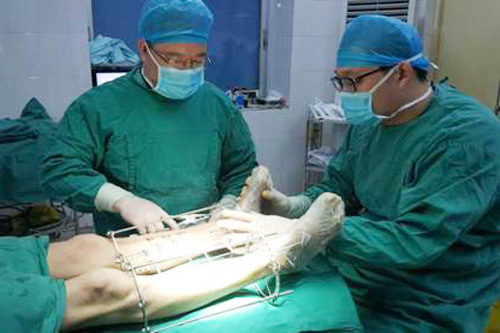 据朱主任介绍血栓闭塞性脉管炎属于下肢缺血性疾病,以往无有效的方法,许多患者承受不了难以忍受的疼痛等症状,最后选择截肢。因此,临床医生一直期待着能有一种再生重建肢体末端血管网的方法,从根本上解决这种闭塞性血管疾病。临床医学院/附属医院骨科利用Ilizarov的外固定技术,根据骨横向牵伸再生血管的原理,使用胫骨横向牵伸外固定的装置,重建下肢微循环。临床医学院/附属医院骨科拥有强大的医疗团队,先后派医师团队去北京、上海、台湾等地区进修学习微血管外科,带来了最先进的治疗技术,让大家不出远门便能享受先进的医疗技术,给广大患者带来福音。