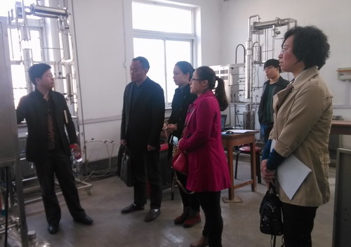 本次交流考察的最后一站是沈阳药科大学,沈阳药科大学制药工程学院院长赵临襄、副院长赵燕芳、生物化工与工程基础教研室主任郭永学、药物化学教研室主任许佑军热情接待了吴助理一行。赵临襄院长作为教育部制药工程专业协作组成员,对全国制药工程专业的现状进行了介绍,并提出了该专业今后发展方向。赵燕芳副院长对专业的情况、课程的开设及实验室的建设情况做了详细介绍。许佑军主任主要强调专业基础的重要性。郭永学主任则着重对工程实践方面的情况进行了介绍。最后在赵副院长及郭主任的带领下对制药工程专业涉及到的工程设备实验室进行了参观学习。