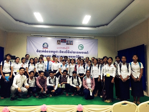 5月27日,柬埔寨王家研究院孔子学院马德望国际大学汉语中心本周再次迎来新的汉语班级,并成功举办开班典礼。马德望国际大学校长李来(LY Lay)、赛萨恩(SEN Saing)、办公室主任严贝(YAN Pich),汉语教师蔡钦,汉语教师志愿者胡阔锋以及百余名新生参加了此次开班典礼。