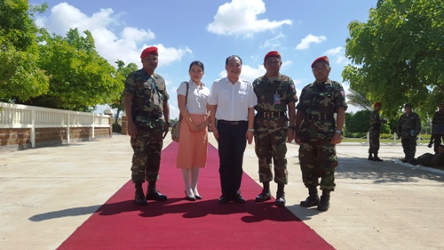5月31日,柬埔寨王家研究院孔子学院中方院长帅式毅在曾海兰老师陪同下,应邀观摩柬埔寨王家军911旅特种伞兵部队防恐防暴演习,落实汉语中心开课事宜。911旅司令查培得将军(General CHHAB Pheakdey)热情接待帅院长一行。