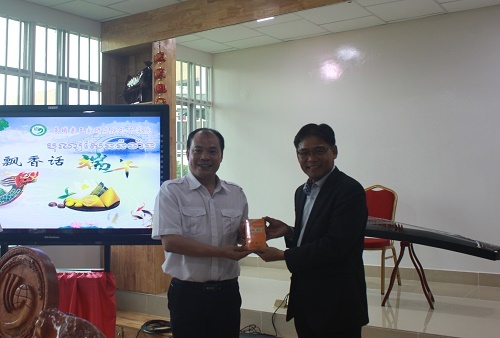 会中,来自金边端华学校的志愿者教师呼唤老师弹奏了古筝曲《渔舟唱晚》、《雪山春晓》,宾主一同感受了中国古典乐器的优美旋律。(陈惠玲)