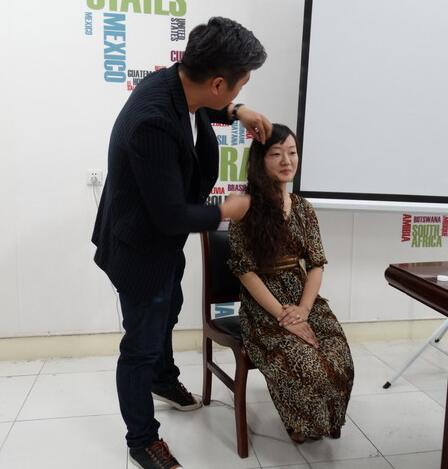 讲座中,张设计师把个人风格分为九大块:可爱型、优雅型、浪漫型、时尚型、柔美型、华丽型、纯洁型、知性型、现代型。根据九种类型,从个人肤色、身材、五官等方面进行分析,在服饰和色彩搭配、发型设计等方面作了细致的讲解,并现场进行了实际操作,使参加活动的各位老师有了非常形象和直观的感受。