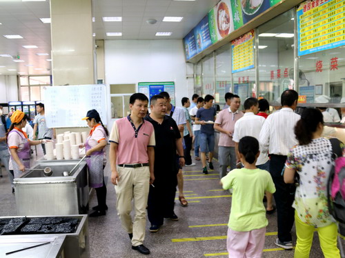 为了学习安徽省高校先进后勤服务与餐饮管理经验,为我校后勤食堂硬件改造和质量提升积累宝贵经验,6月21日,饮食服务中心副主任许谊源、切配中心经理柳欣江、艺术学院新校区食堂负责人李万彪、食堂改造方案设计师刘东方和徐姝副教授一行五人赴合肥工业大学开展参观学习交流活动。