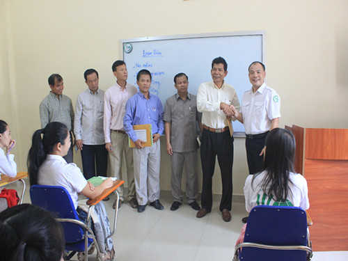 柬埔寨王家研究院孔子学院根据洪森总理的指示,从2013年开始为孔子学院的汉语教师志愿者开设柬埔寨语言文化培训班,今年已是第三期,前两期成功培训了20名学员。(赵金燕 )