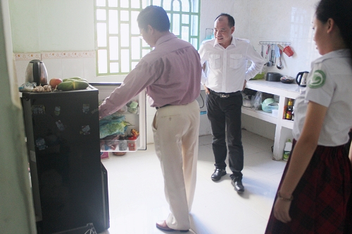 李树提龙秘书长一行察看了志愿者教师宿舍的厨房、卧室、洗漱间等,看到了志愿者们干净整洁的房间,阁下对志愿者吃苦耐劳的精神以及良好的生活习惯给予了高度的评价。视察过程中,秘书长阁下与志愿者教师们进行了亲切的交谈,并不断询问老师们在生活上遇到的困难,以期望能帮助志愿者们解决一些生活上的难题。