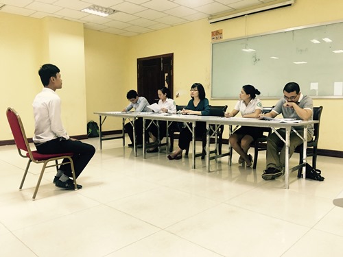 在汉语口语面试前,柬埔寨旅游部部长唐坤对题目的内容提出了自己的见解并感谢5位中国评委的到来和支持。汉语口语面试主要通过提问柬埔寨旅游业对接待中国游客做了哪些准备、柬埔寨文化、中国文化及旅游突发事件的处理等问题来测试学生是否拥有旅游从业者的基本素质和能否自如运用汉语进行交际交流。