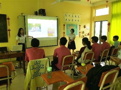 9月24日,“孔子学院日”,柬埔寨王家研究院孔子学院棉芷大学中文系举办“看电影、学汉语”主题文化活动,志愿者教师刘欢和薛佳菁主讲,棉芷大学中文系师生约50人参加了此次活动。