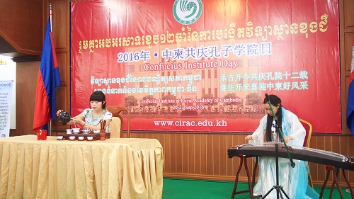 23日下午,在柬埔寨王家研究院礼堂举办了以“承古开今共庆孔院十二载,继往开来喜迎中柬好风采”为主题的“孔子学院日”庆祝活动。柬埔寨孔子学院理事长、王家研究院院长克洛媞达院士在庆祝会上致辞,她说,孔子是中国伟大的思想家、教育家和儒家学派创始人,孔子的思想是中国文化的重要组成部分,对中国和世界产生了深刻的影响。她特别强调,中柬两国自古友谊深厚,坚不可摧,中国永远是柬埔寨的好伙伴、好兄弟,孔子学院也将继续在两国友好关系的发展中发挥作用。随后,汉语教师志愿者表演了中国茶艺、中国功夫、中国乐器、中国舞蹈等带有浓厚中国色彩的节目,孔院师生一起欢庆孔子学院日。志愿者老师的精彩表演,赢得了观众的阵阵掌声。