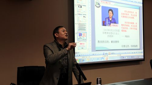 为进一步推动信息技术与课堂教学的融合,促进学校在线开放课程建设, 11月16日,教师教学发展中心组织了第十期名师论坛活动,邀请教育部全国高校网络培训中心特聘教授、教育部全国高校微课教学比赛评审专家、华东交通大学涂晓斌教授莅临学校作了“‘互联网+’时代下在线开放课程建设与应用”专题讲座。第二期新进教师研习营学员、近两年学校慕课课程建设团队教师等90余人聆听了报告,活动由教务处张伏龙副处长主持。