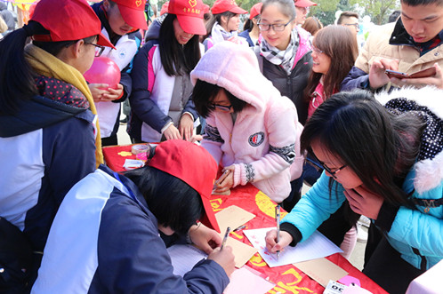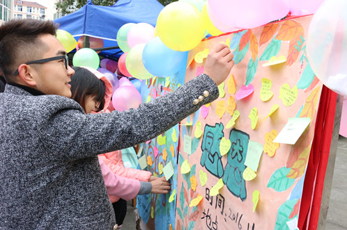 11月24日,电商学院青年志愿者服务部在三食堂广场中心开展了感恩活动,旨在倡议同学们学会感恩身边关心自己的人,我校学子积极参加了此次活动。