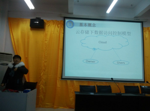 史姣丽博士结合自己的学习工作经历,从云存储下数据访问控制模型、多用户协同编辑访问控制等方面进行阐述,重点讲述了ABE的发展过程,从Fuzzy IBE、KP-ABE、CP-ABE、层次ABE到HABE;也给大家介绍了自己目前的研究进展:用CP-ABE技术实现细粒度访问控制。最后也提醒做科研的老师,要注重创新。