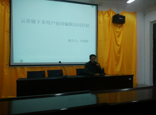 为贯彻落实学校“学术活动月”部署,进一步推动学科建设,营造优良的学术研究氛围,信息学院组织系列学术讲座活动。11月30日下午,信息学院在文友楼424举办了第二场学术讲座,史姣丽副教授、周才学副教授做了题为《云存储下多用户协同编辑访问控制》、《标准模型下基于身份的广义代理签密》的讲座,讲座由高光勇博士主持。学院的部分教师和学生聆听了本场讲座。