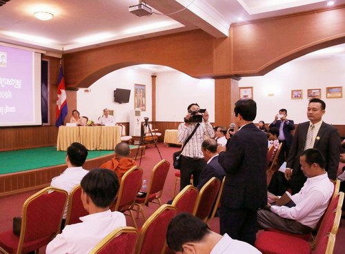 夏院长的报告受到与会者的欢迎, 他就“目前孔子学院面临哪些问题?”、“中柬两国人民之间有哪些值得互相学习的地方”、“为什么叫‘孔子学院’而不是‘老子学院’”等听众提出的问题谈了自己的看法。夏修龙院长说,孔子学院的目的是应世界各国人民汉语学习的需要,开展汉语教学和文化交流工作。两国之间的友好在于民心相通,需要彼此交流和沟通,以加深了解,长久友好,这正是孔子学院的使命,孔子学院在中柬友好中起到桥梁和纽带作用。夏修龙院长的发言赢得会场的阵阵掌声。