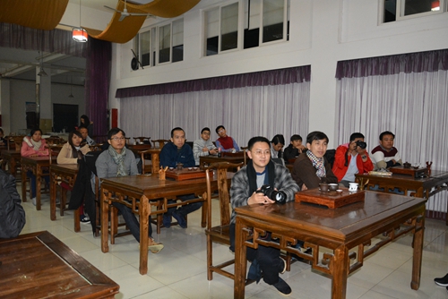 下午,旅游学院的杨婵容老师为体验团成员们带来一堂别开生面的中国茶艺课。杨老师简单的为大家讲解了中国的茶道文化、茶艺的相关礼仪,并向大家展示了中国的茶艺。经过老师详细的讲解和示范之后,大家两人一组,开始尝试动手泡茶,复习之前老师教授的动作和步骤。课程结束后,杨老师为表现优异的成员赠送了紫砂壶和茶叶,并鼓励大家回去后多多动手尝试。