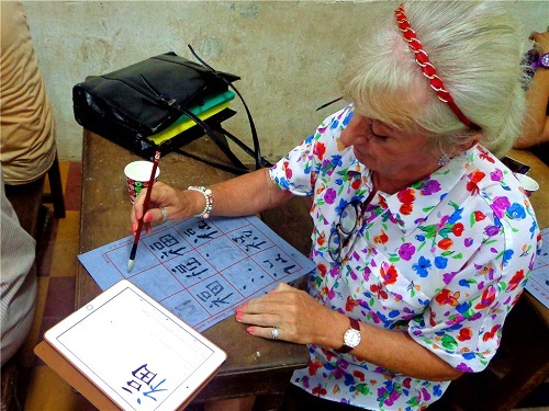 法国籍学员在水写布上练习