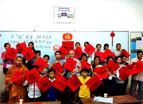 柬埔寨孔子学院吴哥高中孔子课堂举办“书‘福’迎春”活动