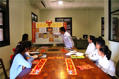 在鸡年新春来临之际,柬埔寨暹粒省政府官员班学员表现出对中国春节和围棋艺术的浓厚兴趣。1月24日,柬埔寨孔子学院暹粒省政府官员班在省政府大院举办了以“金鸡报喜,妙趣围棋”为主题的文化活动。省政府文化处、秘书处、对外交流处等部门的有关官员参加了此次活动。