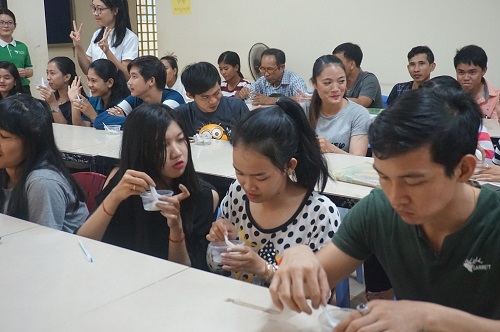 学生们还品尝了汉语中心教师们精心烹煮的汤圆,学生们都对其赞不绝口,纷纷询问元宵的做法,比较中国元宵与柬埔寨汤圆的异同。参加此次活动的桑美秀(Som Sokkeav)同学表示:想不到中国的元宵节这么好玩,不仅可以吃到好吃的汤圆,欣赏五彩缤纷的花灯,还可以猜灯谜、学习汉语知识,收获很大。(赵丽萍)