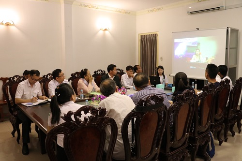 2月28日上午,北京外文出版社徐步社长一行4人访问柬埔寨王家研究院孔子学院。柬埔寨王家研究院院长、孔子学院理事长克罗媞达院士(H.E. KHLOT Thyda)、孔子学院院长谢莫尼勒(H.E. CHEA Munyrith)、中方院长夏修龙热情接待了徐步社长一行。