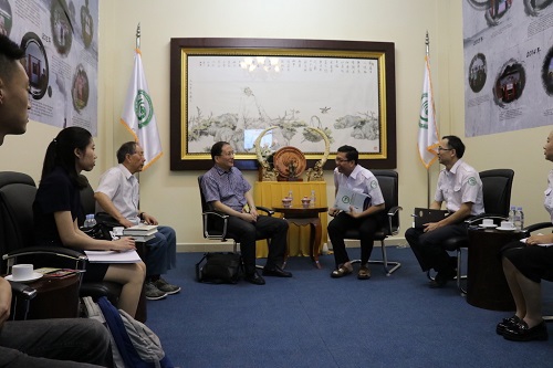 双方在柬埔寨王家研究院会议厅进行了友好会谈,徐步社长此行目的是就《习近平谈治国理政》柬文版一书发行的有关事项进行磋商。克罗媞达院长欢迎徐社长一行访问柬埔寨王家研究院和孔子学院,并介绍了该书的翻译情况。徐步社长表明了此行的目的,他介绍了外文出版社的基本情况,感谢克罗媞达院长的热情接待。