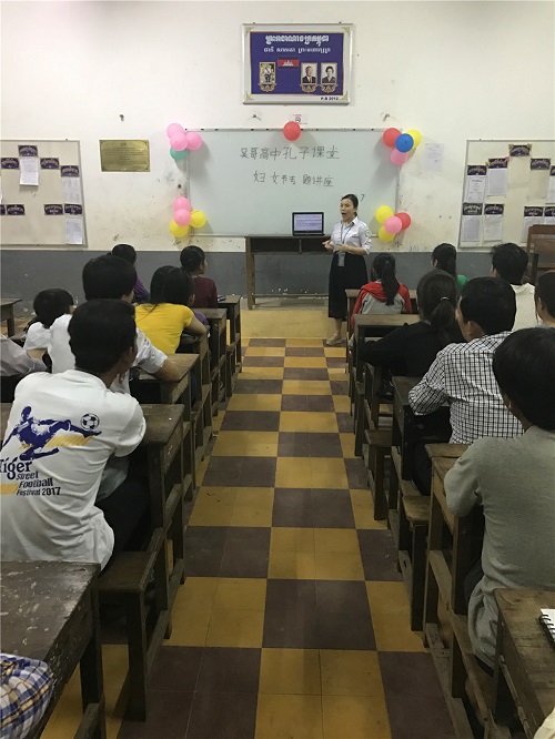 柬埔寨孔子学院暹粒吴哥高中孔子课堂举办 “美丽心灵,魅力汉语”妇女节专题讲座活动