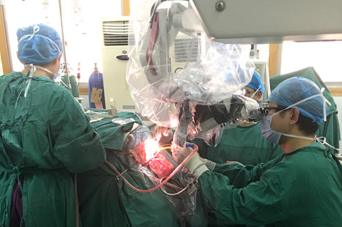 颈静脉孔肿瘤切除在神经外科是高难度的手术,这两例手术,由于肿瘤向颅内生长压迫脑干,手术切除必须非常精细,否则极易造成损伤,如果损伤脑干更是会危及生命。目前国内,能完成这种手术的也只有少数几家医院,这类手术的成功开展标志着临床医学院/附属医院神经外科已与国内先进水平接轨。