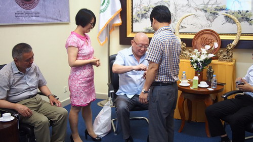 5月30日,由中国中医药出版社副社长林超岱教授率领的中国著名中医专家组一行4人访问了柬埔寨王家研究院孔子学院,柬埔寨王家研究院院长谢莫尼勒(H.E.CHEA MUNYRITH)和中方院长夏修龙代表柬埔寨王家研究院孔子学院热情接待了中医专家组。