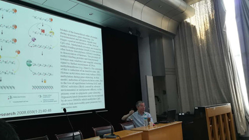 讲座中,孙中生研究员从表观遗传学发展的历史、现在研究现状及未来发展的方向讲起,并对其课题组在基因组与表观基因组新技术开发、表观调控机理与疾病关系的研究工作进行介绍。孙研究员的课题组已经克隆多个与孤独症及孤独症各亚型相关的疾病基因,并发现了孤独症与其他精神疾病共有及特有的基因,为孤独症的分子诊断提供了理论基础。讲座后,孙研究员同与会教师进行交流。