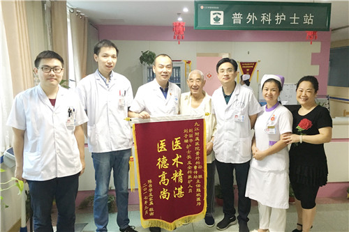 陈老伯说:“我知道自己这次手术风险极大,非常感谢这么多可敬可爱的医生和护士对我的呵护,所以这次特意过来感谢他们”。收到锦旗后,孙主任表示,作为医务工作者,治病救人是医务人员职责所在,患者恢复健康,就是对医者最好的肯定和最大的鼓励。