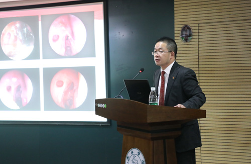 吴文灿教授、廖洪斐教授分别作了题为《鼻内窥镜技术在泪道疾病治疗中的应用》和《鼻内镜在泪道疾病及其他眼病中的应用》的学术讲座,他们就泪道疾病诊疗中的前沿技术、新颖理念进行分享交流,拓宽了参会者的学术视野。黄健主任以《内窥镜下泪囊炎手术的术前泪囊测量、术中处理及术后吻合口阻塞的治疗探讨》为题,从实际临床技术实战出发,对内窥镜下泪道手术的术前检查、诊断和手术细节进行了详细地解说;眼科唐敏副主任医师做了题为《眼眶骨折后泪道损伤的治疗》的学术报告;同时,眼科其他专家就临床医学院/附属医院近年来在泪小管断裂吻合术等多方面泪道疾病治疗中所取得的成就进行了汇报,对相关问题提出探讨。全天学术培训,会场现场讨论热烈,学术交流气氛浓郁,达到了预期效果。
