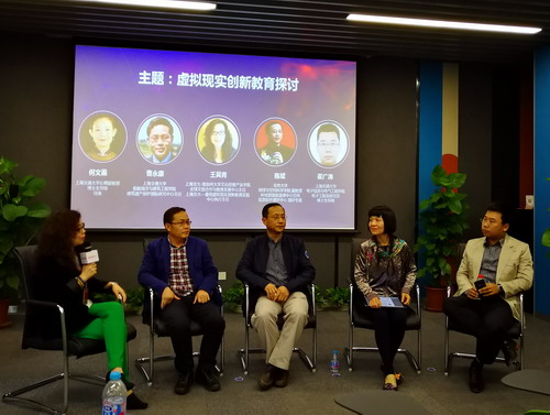 此次虚拟现实创新教育研讨会由上海交通大学-南加州文化创意产业学院主办,邀请了产学研跨界大咖共话虚拟现实技术前沿及其教育应用实践。北京大学地球与空间科学学院、科技部国家遥感中心测试专家陈斌副教授,上海交大电子信息与电气工程学院博士生导师翟广涛教授、上海交大文创学院全球文创合作与教育发展中心主任王昊青副教授、上海交大长聘博士生导师何文薰副教授,上海交大建筑遗产保护国际研究中心曹永康主任,曼恒数字CTO李根博士等作虚拟现实技术及应用学术报告,并与全国60多所高校和教育机构的嘉宾齐聚一堂,共话虚拟现实VR创新教育实践、内容创意和科技创新的文化融合。